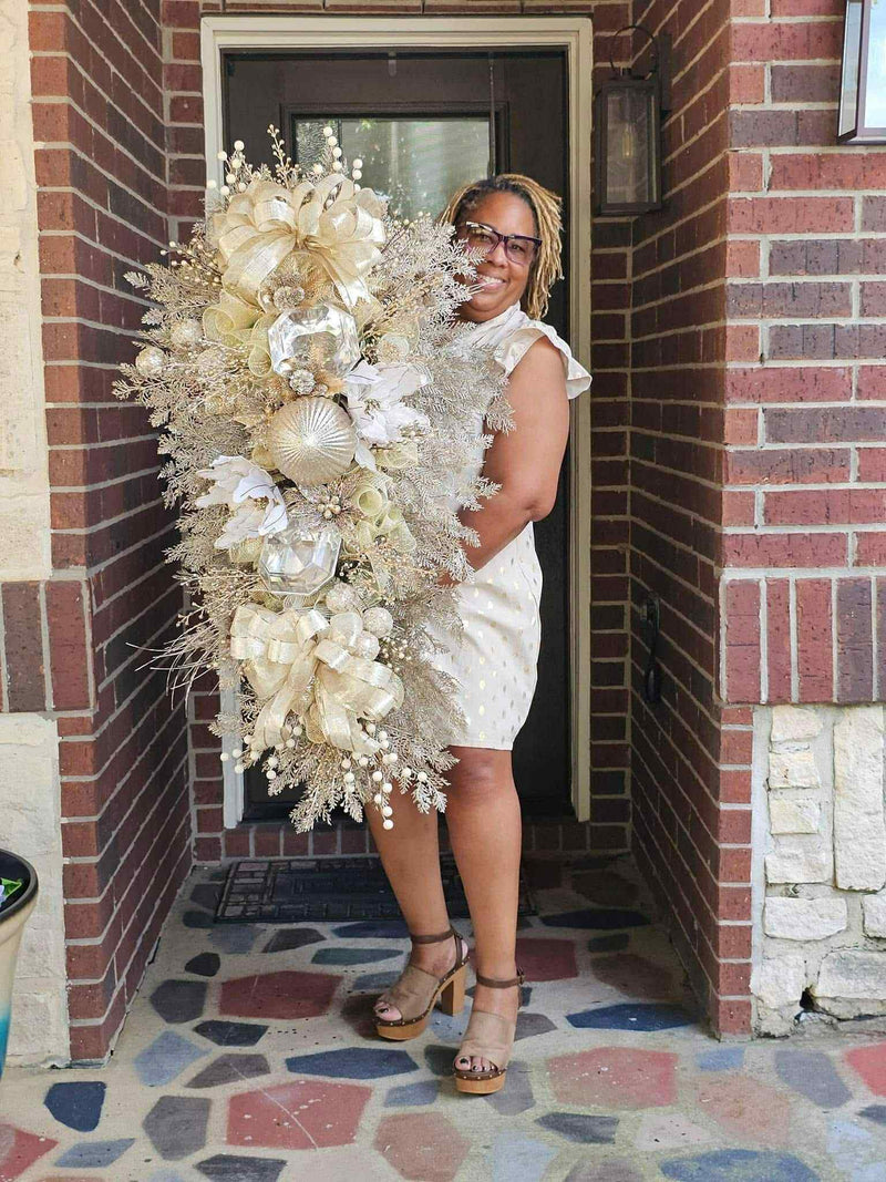 "If you love making wreaths and want to step your game up I recommend purchasing Cedteria’s Door Decor tutorials. I purchased her viral jewel swag tutorial and it was very easy to follow. This thing is huge but the picture is not doing it justice. I decided to put my own spin on it instead of using the jewels. It's actually not finished but so far I'm loving it!! Buy the tutorial....you won't be disappointed!!"— Patrice
